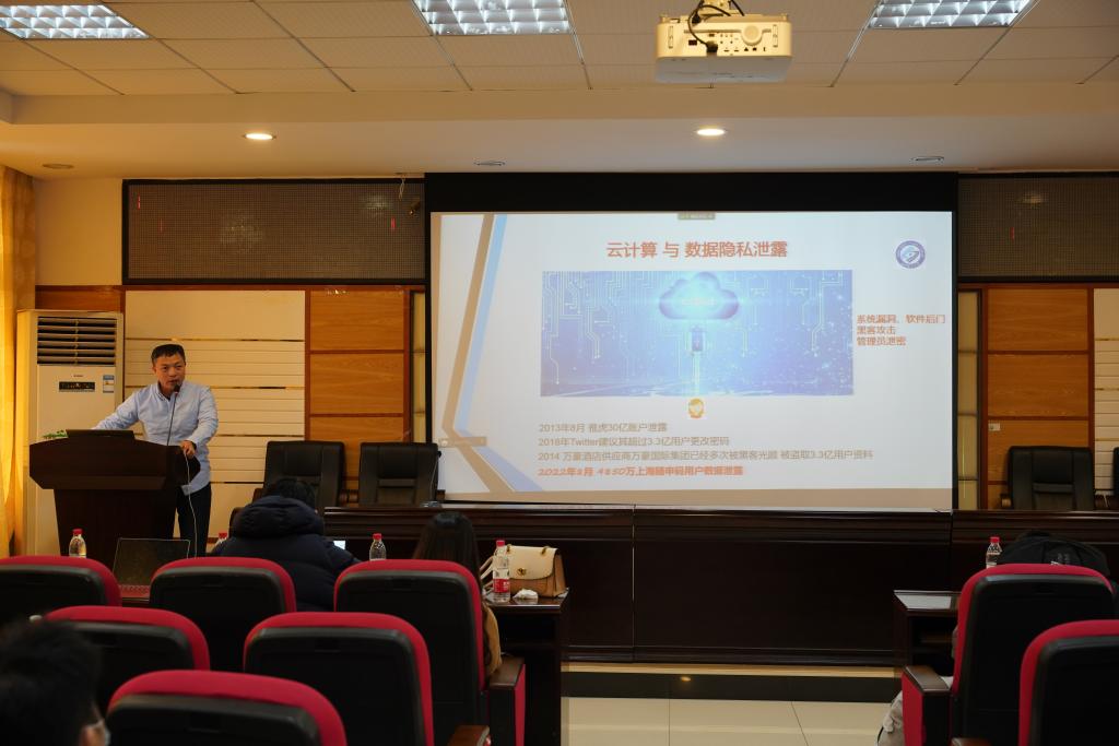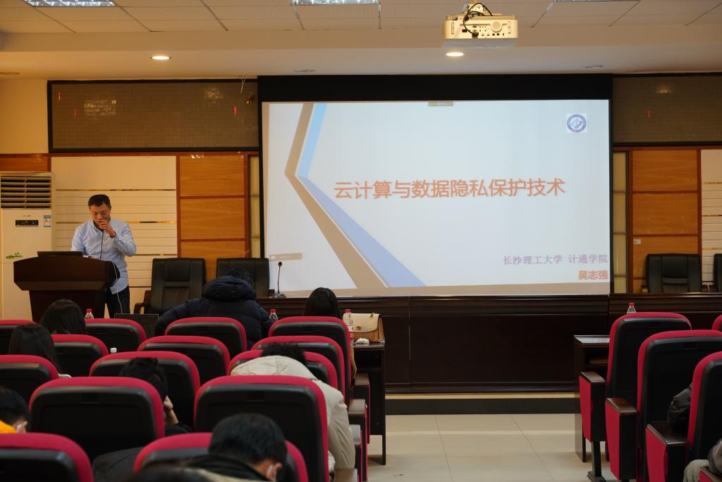 云顶国际vip8866硕士生导师吴志强,针对云计算数据隐私保护技术问题,报告了云计算与隐私保护;密态云数据库、选择明文攻击与统计攻击;不经意随机访问机等内容。