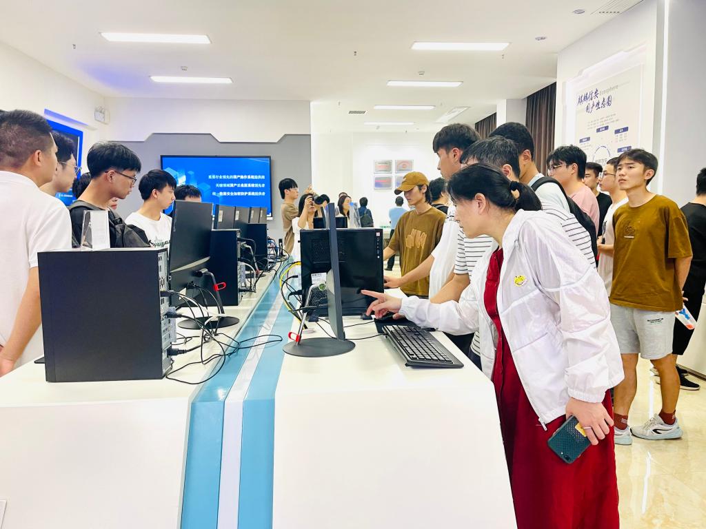 代表团在麒麟信安展厅和欧拉生态创新中心展厅参观,讲解员为大家详细介绍了公司发展沿革,所获奖励荣誉、科技创新成果,从多个角度阐述了麒麟信安“2+8+N”的产业链模式和代表产品:接着,双方举行了欧拉人才培养交流会。人才培养部部长罗小虎介绍了欧拉生态在数字化生态和创新领域的项目和创新,并就大国博弈背景下自主科研的突破和校企合作提出了自己的看法。代表团师生共同体验了OpenEuler课程,并就欧拉自主研发的操作系统进行了体验分享和互动,专业教师与欧拉人才培养部负责人围绕计算机人才培养和课程设置进行了深入交流。