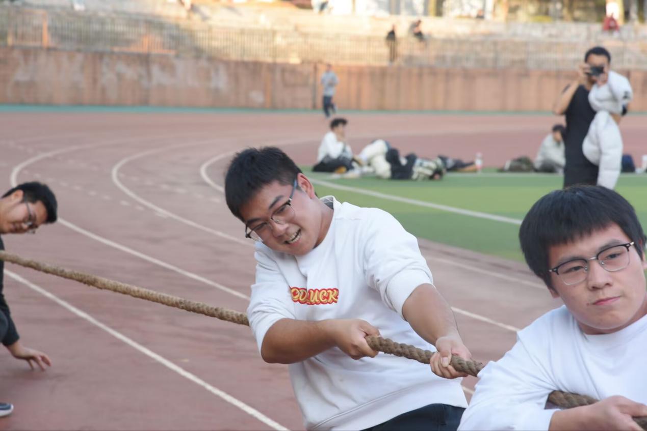 本次活动以IT青年大学适应团体活动为主题开展拔河比赛。活动伊始,周础基做讲话动员,他鼓励全体同学凝聚力量,团结一致,在比赛中相互支持,共同努力,赛出风采!之后工作人员组织各班级抽签决定比赛顺序并划分场地。各班同学们统一穿着班服,班级口号此起彼伏,各位同学为班级荣誉而战,现场充满活力的呼喊声与加油声交织在一起,构成了这场青春盛会最动人的乐章。