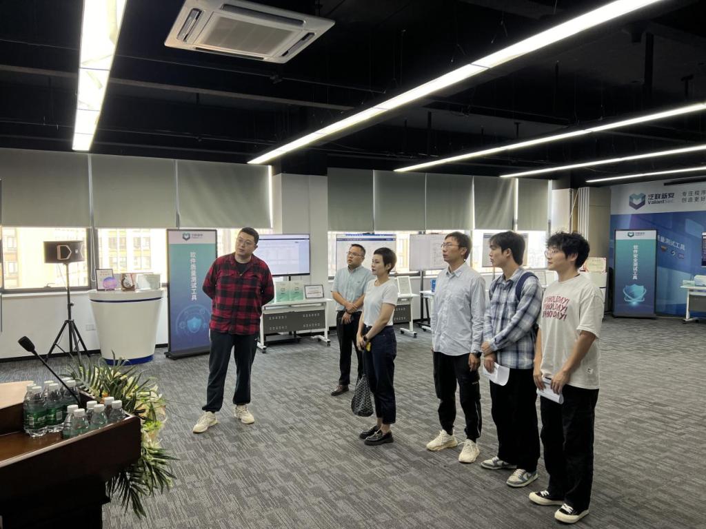 在随后的交流环节中,双方围绕实习基地建设、毕业生就业及校企科研合作等议题展开了深入探讨。王觊婧表示,希望通过与泛联新安的合作,能够为学生提供更多实践机会,并促进科研成果的转化应用。唐勇表示,愿意为学校提供更多的实习岗位和就业机会,并期待双方在智能制造、信息技术等领域开展更加广泛的技术合作。会议结束后,学院一行参观了泛联新安的办公环境,进一步了解了公司的文化与发展理念。最后,双方在轻松友好的氛围中合影留念,为此次洽谈画上了圆满的句号。