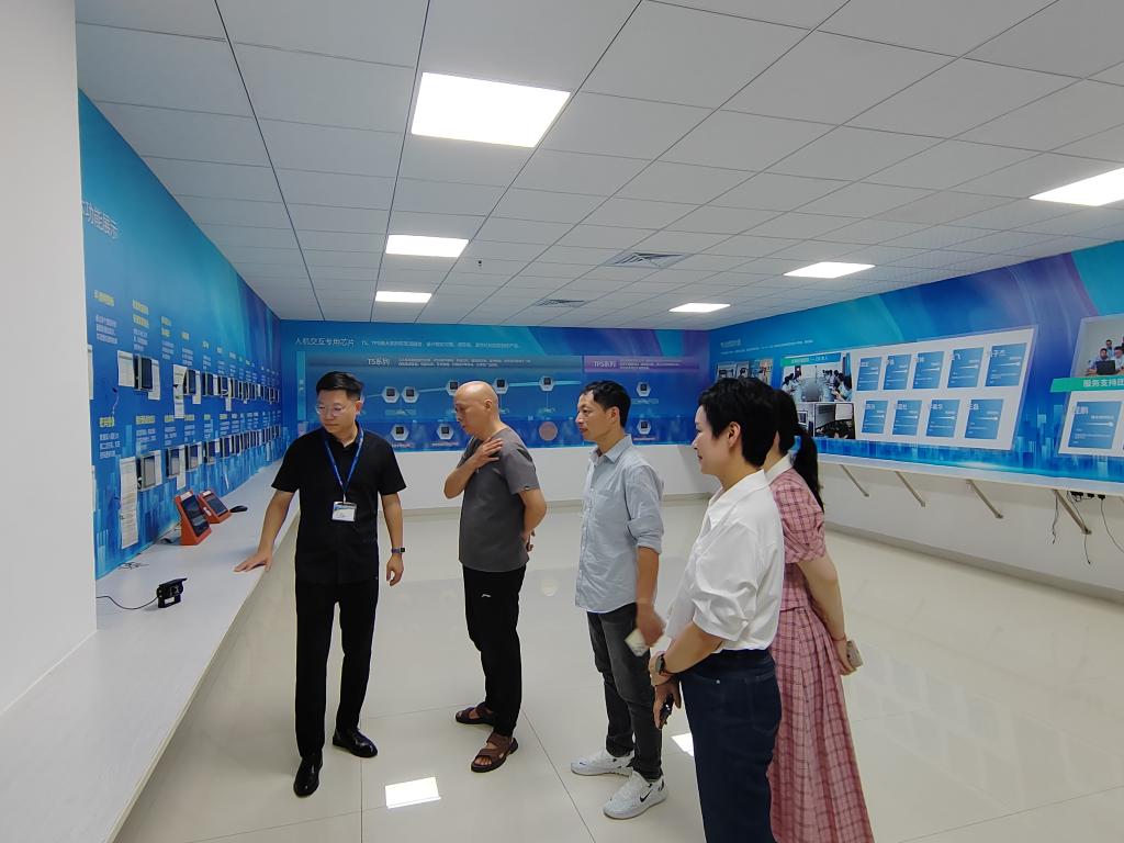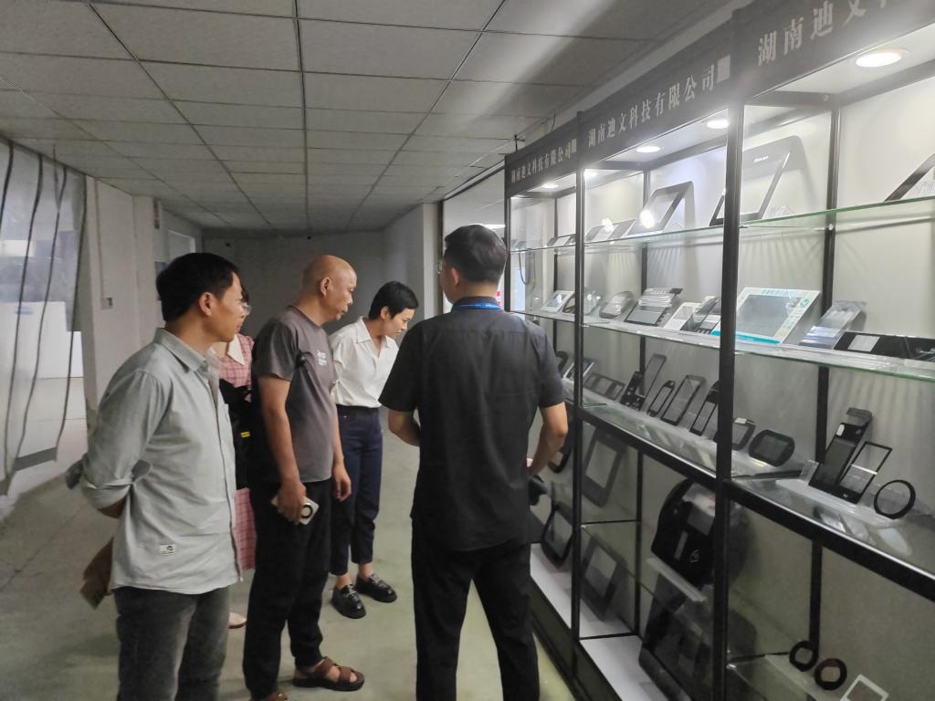 在迪文科技市场部经理莫炎的陪同下,学院一行首先参观了企业展厅。通过讲解与互动演示,考察团深入了解了迪文科技的发展历程、核心产品、技术优势及市场布局,现场体验了其在人机交互、智能终端等领域的创新成果。随后,团队走进生产车间、教学实训区及员工生活区域,实地考察企业生产流程、教学设施及学生实习环境,对企业全产业链整合能力与人才培养机制有了更全面的认识。