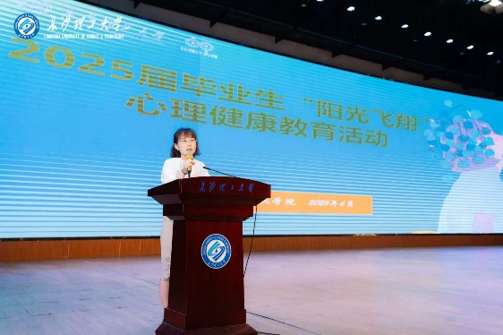 6月10日晚,计算机学院于金盆岭校区5教大礼堂举办2025届毕业生“阳光飞翔”心理健康教育活动,旨在引导毕业生关注自身心理健康,缓解学业压力,以更加阳光的心态迎接未来的挑战。
