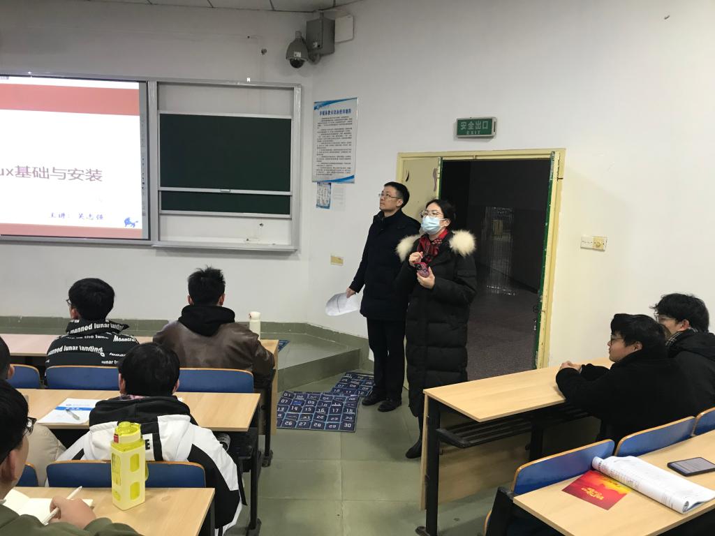 226日上,算机与通信工程学院党委书记刘朝辉院长张锦、副书记王觊婧副院长蔡烁、夏卓群、章登勇、何施茗等领导及教务办主任、全体学生辅导员一早来到教学楼深入教学一线检查了新学期学院“第一节课”课情况。