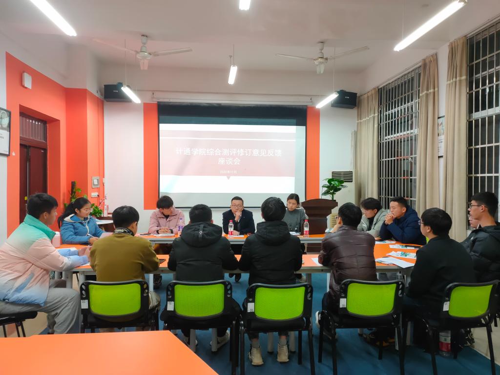 综合测评细则是促进学生德智体美劳全面发展的重要制度,关系到学生发展的切身利益,11月27日晚,计通学院于云塘校区理科楼B103召开综测修订意见反馈座谈会。会议由学工办辅导员聂静主持,党委副书记涂道勇出席,团委学生会生活权益部干部代表、各年级专业学生代表结合自身实际,积极讨论发言。