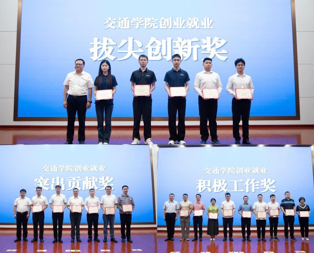 会上,党委委员、副校长刘朝晖为“拔尖创新奖”获奖团队代表颁奖,创业就业指导处处长田上为“突出贡献奖”获奖师生颁奖,交通学院副院长(主持工作)吕松涛为“积极工作奖”获奖教师颁奖