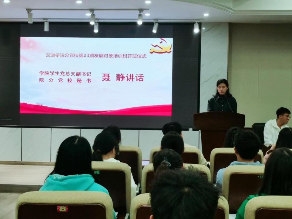 11月3日晚,交通学院分党校第23期发展对象培训班开班仪式在云塘校区文科楼D207教室举行。本次开班仪式由分党校秘书聂静老师主持,培训班全体学员参加。