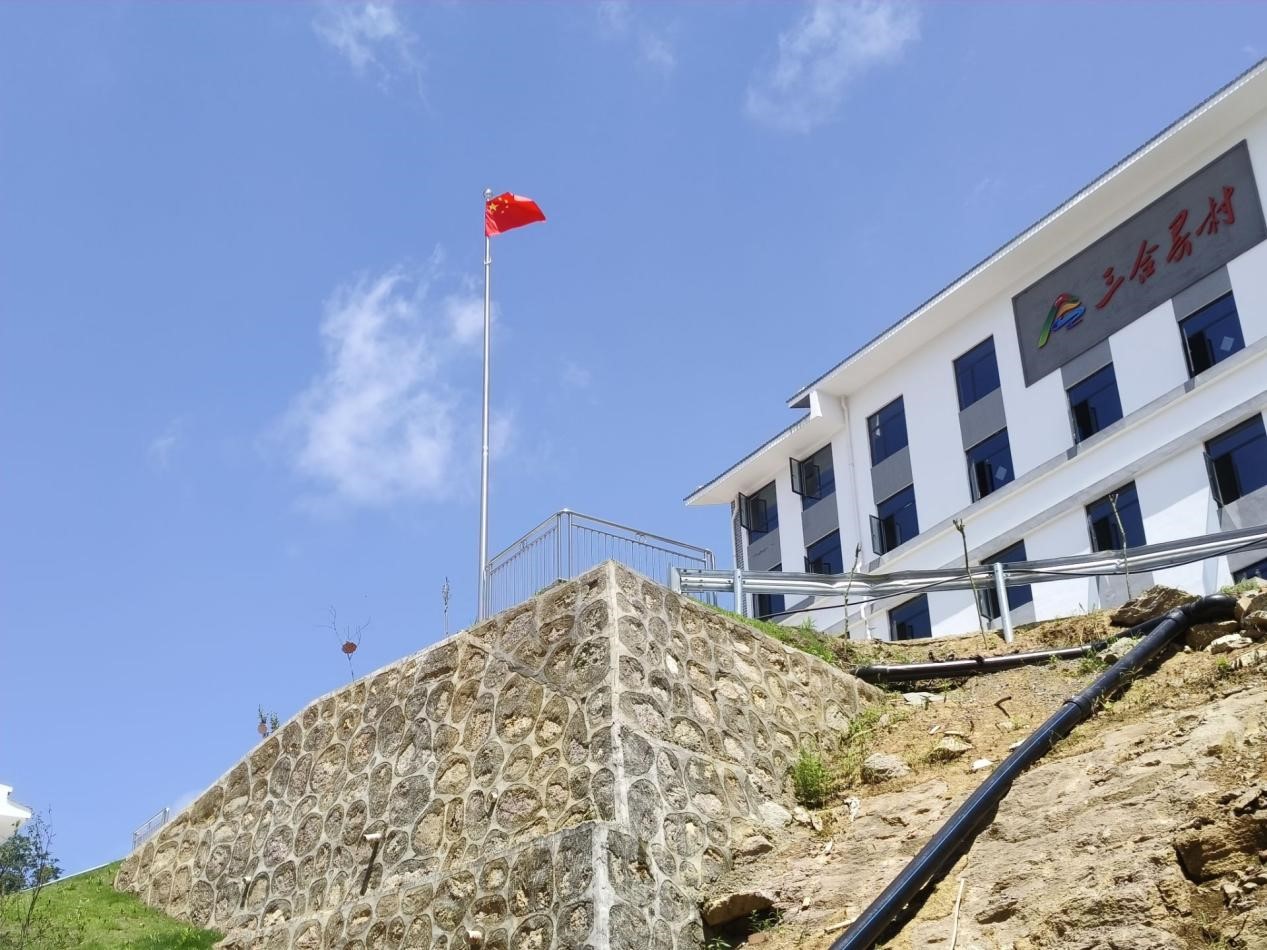产业发展引领乡村建设,核心工程——产业文化中心伫立于村庄顶部。实践团成员们在村民的引导下参观了图书馆,民宿,学校等新建场地。芙蓉王路、白沙路、和天下路的硬化建设相继完成,村民们的脚下不再是泥泞,而是厚实的现代化公路。“魅力三合界,幸福三合人”的标语印刻在道路两端,村内民生短板不断被补齐,乡村振兴的风实实在在地吹到了各家各户。