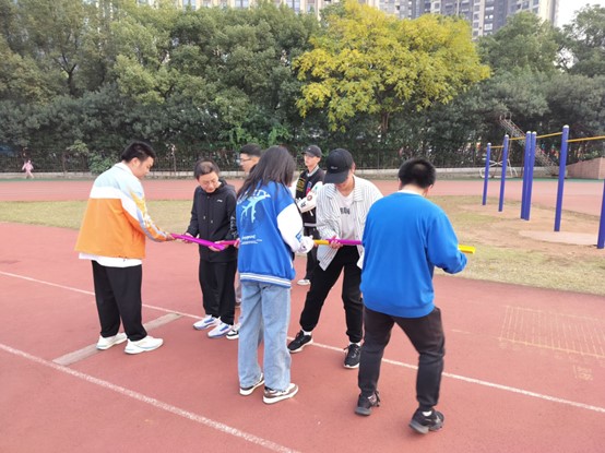 此次活动一共包含六个摊点,摊点四主要由邓凯耀,史丽雯等人负责,其中游戏内容有:“能量传递”、“无敌风火轮”、“指压板挑战”。在游戏的过程中,大家默契合作,精诚团结,共同完成所面临的挑战。队友之间互帮互助,大大提升了学生之间的合作能力,使得交友氛围更加浓厚。在场的志愿者们也尽职尽责的完成工作任务,为同学们讲解规则和维持游戏秩序。