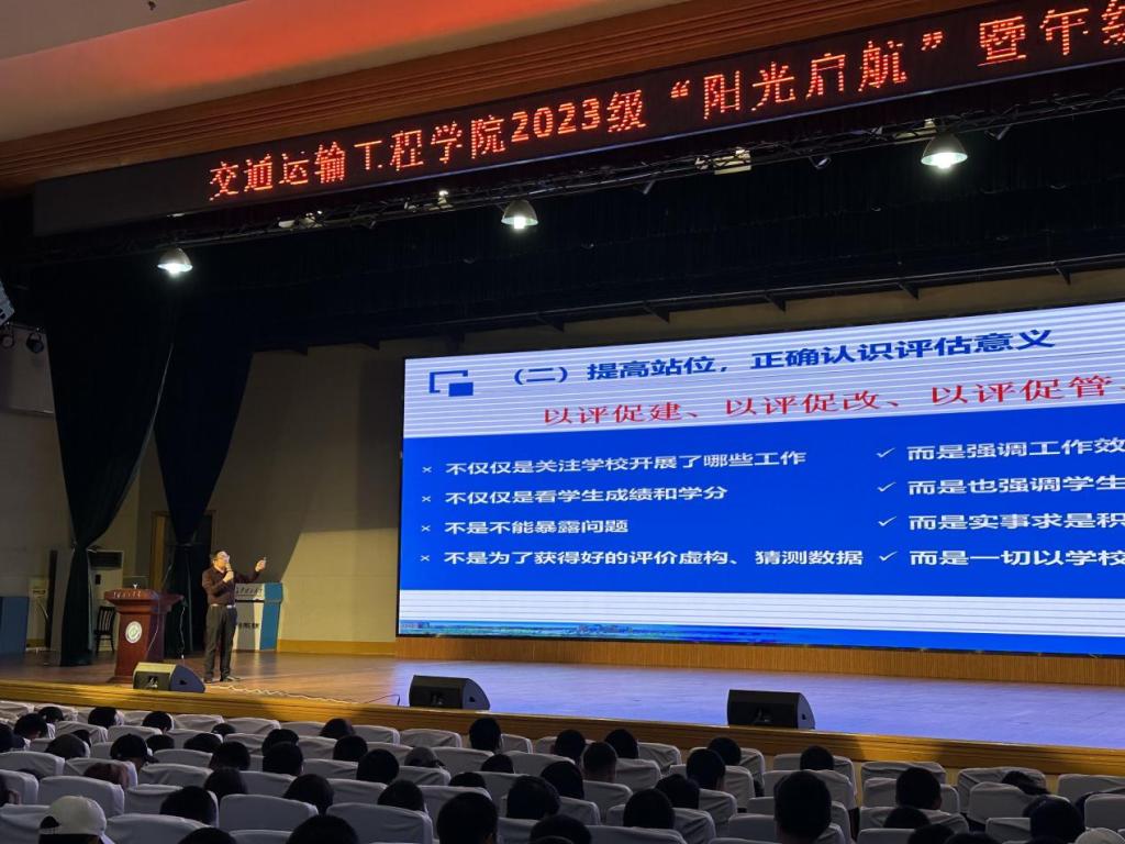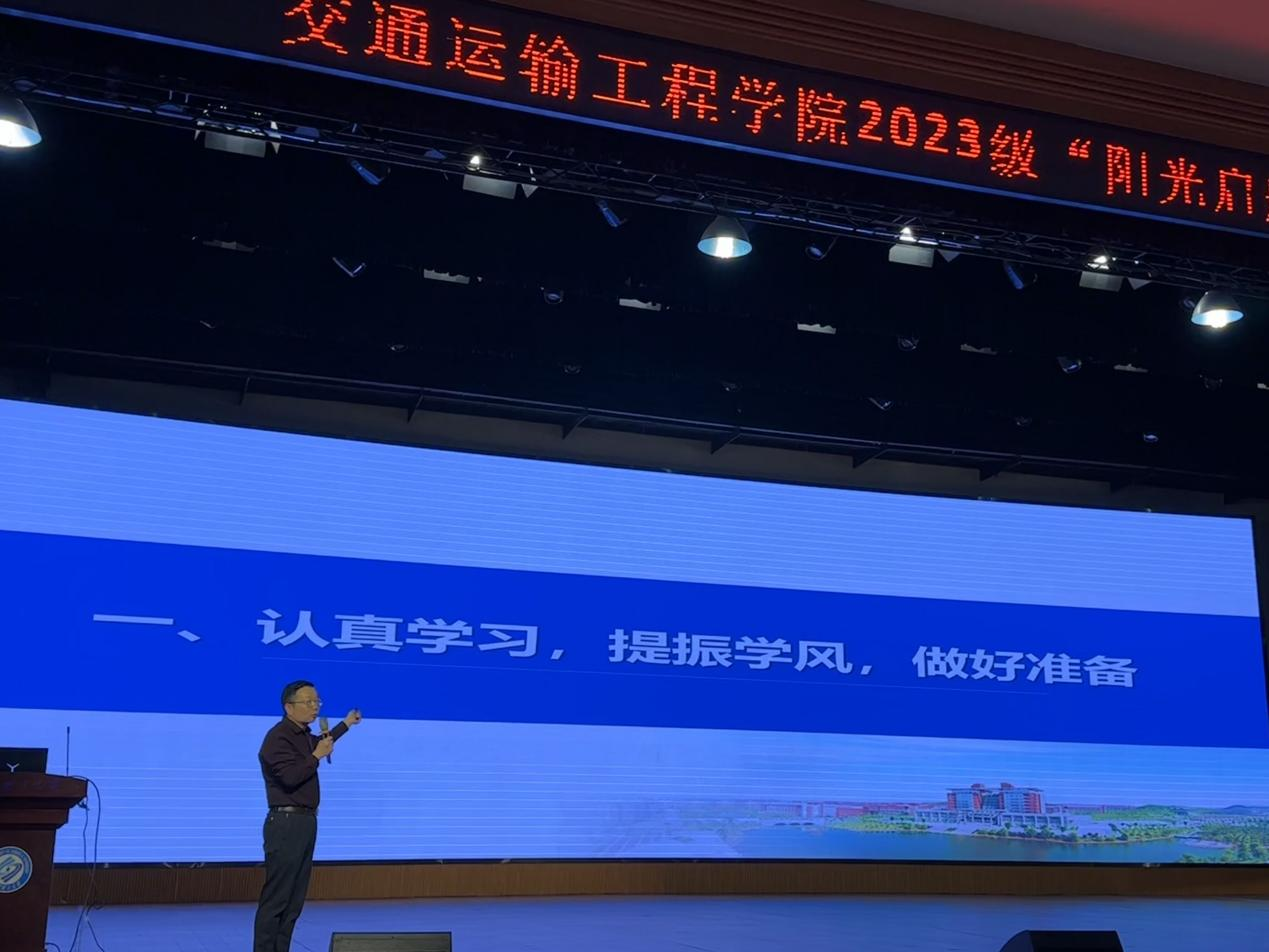 11月7号晚,交通学院于金盆岭校区五教大礼堂召开2023级“阳光启航”计划暨年级大会。本次会议由23级辅导员彭笠主持,交通学院党委副书记涂道勇、23级辅导员潘博洋出席,2023级全体新生参加。