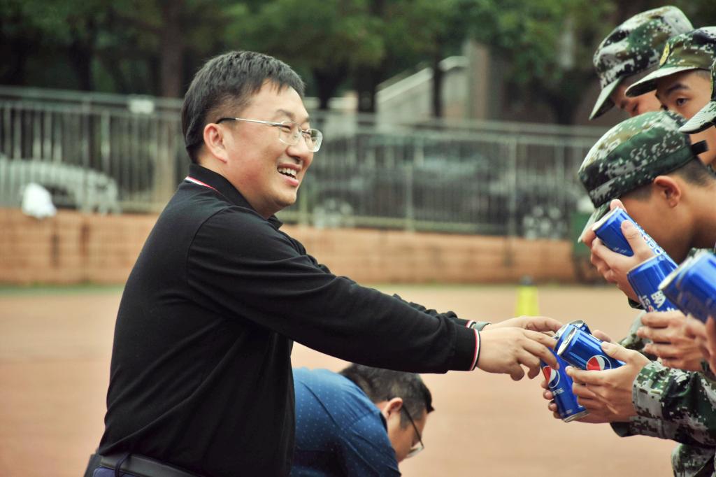 最后,学院领导们为同学们分发了印有自己名字的订制可乐,800余份可乐以“STTE”为形向同学们表达了领导老师们的殷殷期盼。同学们笑容满面的接过可乐,并对老师们表示真挚感谢。“作为有幸受检的交通青年,我感到非常荣幸,老师们给我们带来了印有姓名的可乐,让我感到了老师对我们军训生活的暖心关怀,这让我又有了无尽动力”,一位军训新生说道。