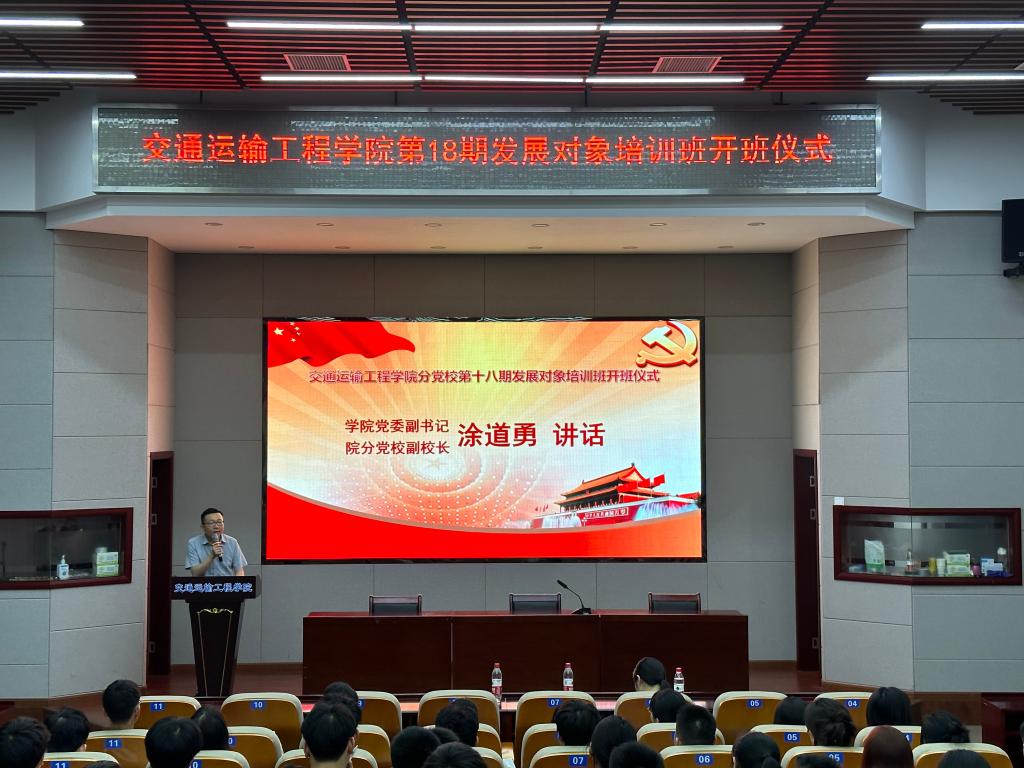 5月4日晚,交通学院分党校于工二交通科技报告厅举行第十八期发展对象培训班开班仪式,院党委副书记、分党校副校长涂道勇,分党校秘书肖敏强和第18期发展对象培训班全体学员参加。