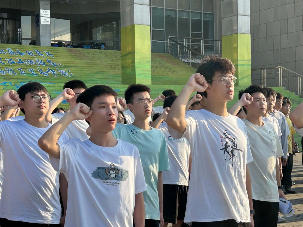 七点整,国旗班着装整齐,迈着矫健的步伐,护送国旗入场。伴随着嘹亮的国歌声,全体行瞩目礼,庄严肃穆。在国旗班司仪的带领下,我们在国旗下庄严宣誓,斗志昂扬,铿锵有力,展现了交通青年积极向上的精神风貌。