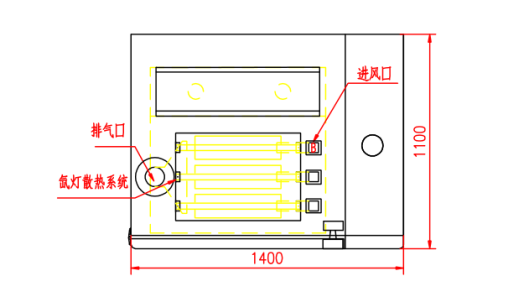 (2)氙灯散热系统:氙灯采用风冷散热,仪器顶部设有一个进气口,三个排气孔。