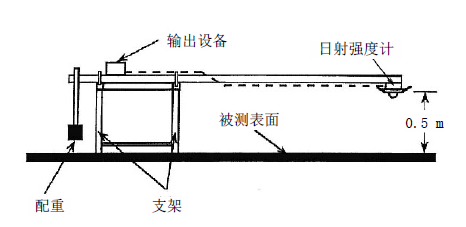 ASTM编制了E1918标准方法[3],评估材料表面对实际太阳辐射的反射能力,该方法是用精密日射强度计(PSP),在现场测量水平或低坡度(小于9.5º)表面的太阳反射比。这种方法简单直观,能够实时监测表面对太阳辐射反射的变化情况,反映了材料对实际太阳辐射的反射能力。缺点是易受环境因素制约,多云和薄雾天气严重影响测量工作。因此测试期间天气应该晴朗、无云、无雾霾。