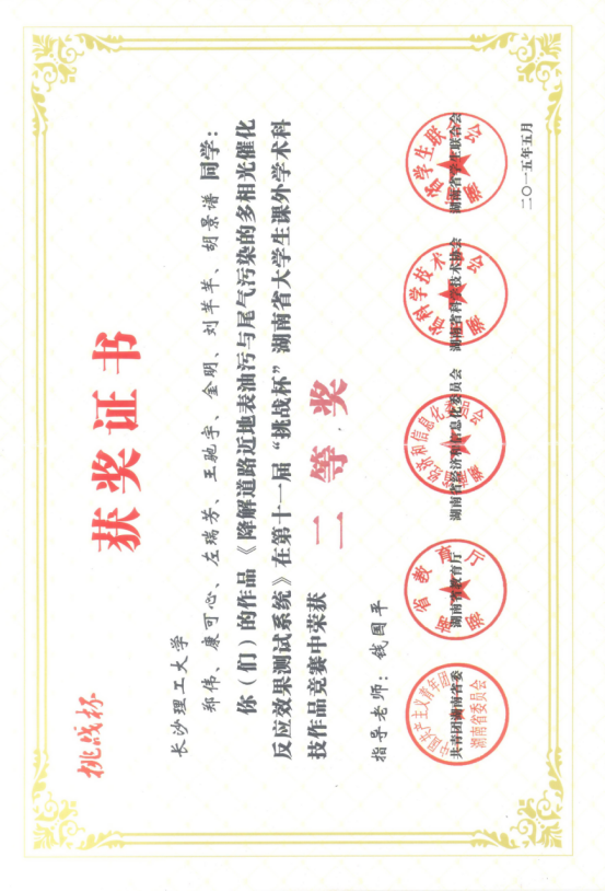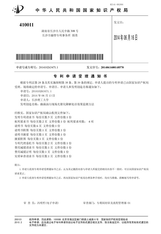u 国家发明专利“光催化降解漏油污染的路面表层效果的测试方法”受理号:201410263427.0。