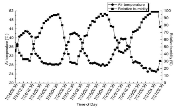 图4 相应的路表温度与湿度测试结果