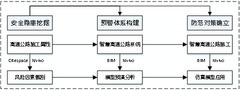 (1)如何使用科学计量研究方法与质性研究方法对智慧高速公路施工安全隐患进行科学识别,通过Citespace、Nvivo软件和BIM技术进行系统全面地挖掘隐患因素?