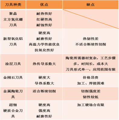 表6 各种刀具的优缺点