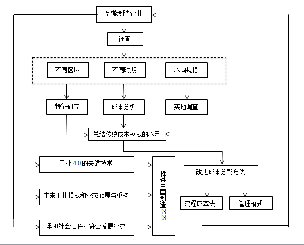 中国长期以来位于世界制造业大国的位置,却存在“大而不强”的发展问题,为改变此现状,“十三五规划”提出《中国制造2025》,力求在工业4.0潮流中,紧抓关键技术智能制造。智能制造深刻影响未来工业模式和业态的重构,企业的思维方式和管理模式应该调整以适应新环境。成本管理作为现代企业管理的重要组成部分, 有利于提高企业整体经济效益, 在提高企业竞争力,促进企业发展上有着重要作用。因此本小组决定就“智能制造条件下企业成本动因及成本管理创新”进行研究,具体目的如下: