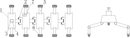 1.机器人躯体 2.躯体转向关节 3.云台 4.视频监测装置 5.机器人行走臂6. 行走轮7.传感器