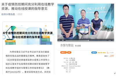 给排水系组织老师们积极对接给排水教指委,依据给排水教指委指导意见,利用超星学习通、腾讯课堂、中国大学MOOC、QQ群视频、钉钉会议等教育部推荐的慕课平台,与其他给排水高校建立在线课程互助系统,共享“金课”师者。给排水系根据云顶国际vip8866学生及课程体系特征,积极研讨、认真甄选,选择超星学习通及哈工大等985高校优秀课程资源,作为共享“金课”师者平台与师者课程。