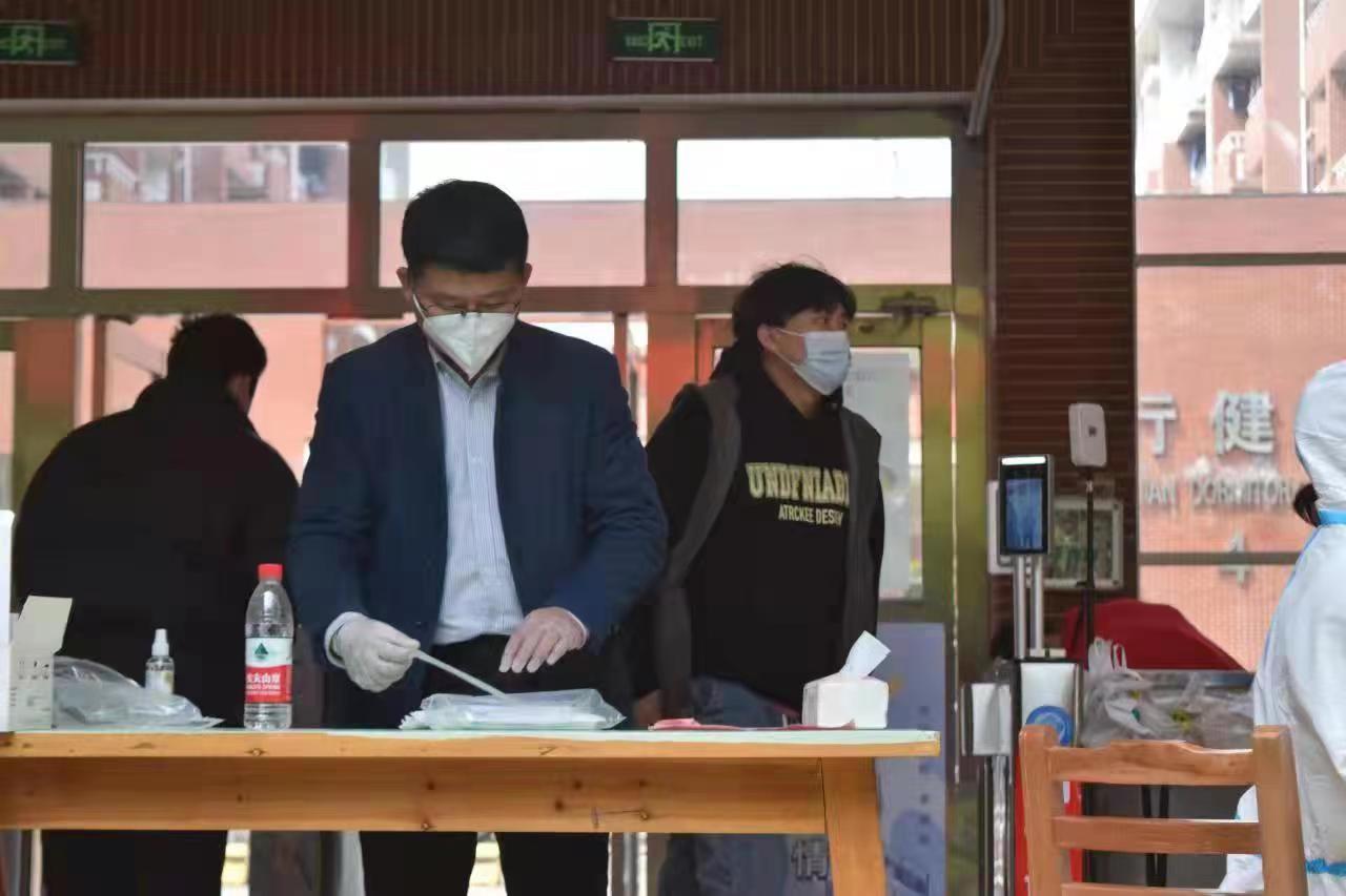 4月份以来,教务处党支部9名党员同志投身学校抗疫一线开展志愿服务,在学校核酸检测点,协助医护人员开展核酸采集信息扫码、流程指引、人员疏导、秩序维护等相关工作。在校门口,教务处党员干部们坚守应急值周岗位,督促教职工佩戴口罩、扫描场所码有序进入校园,努力为疫情防控工作贡献力量!