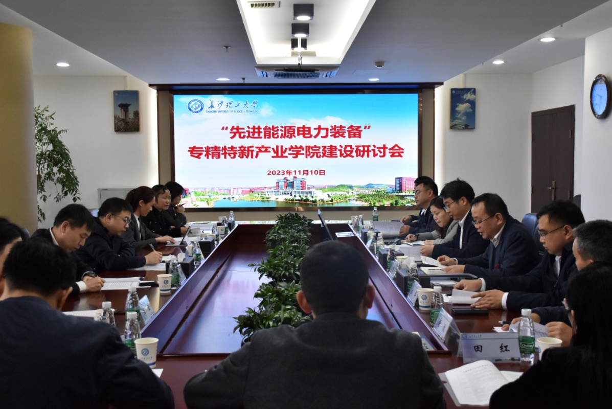 11月10日上午,先进能源电力装备专精特新产业学院建设研讨会在云顶国际vip8866一办公楼五会议室召开。来自长沙市中小企业发展中心、湘能楚天电力科技有限公司、中车株洲电力机车研究所有限公司、湖南九九智能环保股份有限公司、湖南先步信息股份有限公司、湖南省智能电力设备产业技术创新战略联盟等单位负责人参加会议,长沙理工大学副校长钱国平、教务处处长刘思强、能源与动力工程学院及电气与信息工程学院相关人员参会,研讨会由刘思强主持。