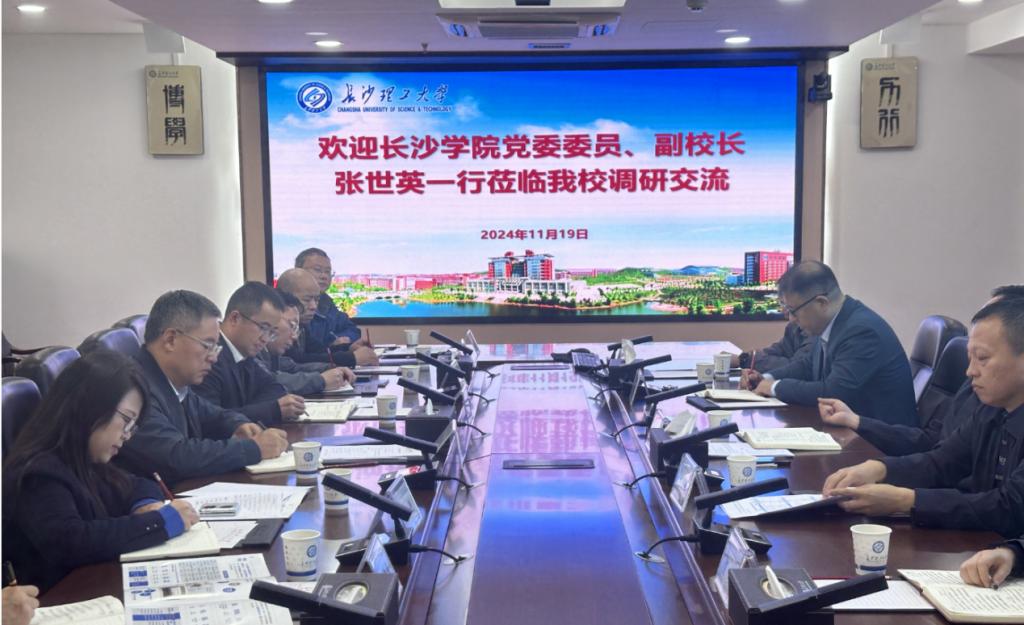 11月19日,长沙学院党委委员、副校长张世英,教务处处长陈艳等一行来云顶国际vip8866调研,双方在云塘校区一办六会议室进行座谈。学校党委委员、副校长刘朝晖,教务处相关人员参加座谈。
