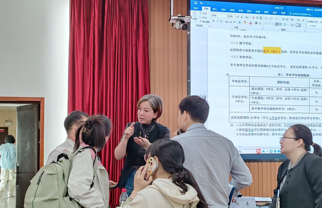 在交流环节,邓丰与会人员结合各专业实际,就培养方案修订中的共性问题和难点展开深入讨论。针对“如何平衡通识课程与专业课程的学分占比”、“如何构建跨学科交叉培养路径”等议题,邓丰与参会代表逐一探讨并提出建设性意见。她强调,各学院应充分发挥基层教学组织作用,认真研读学校文件,确保培养方案修订工作严谨扎实。