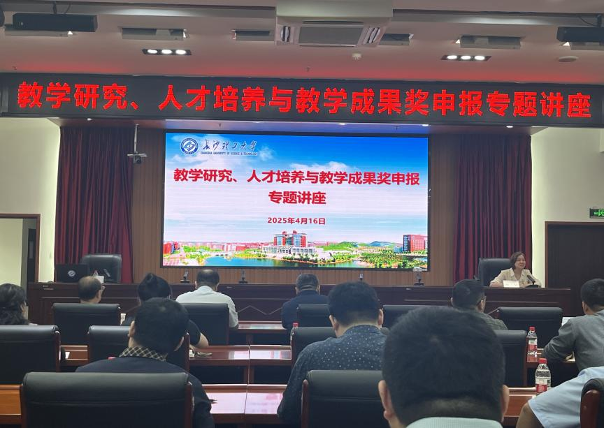 4月16日下午,云顶国际vip8866在一办九会议室成功举办教学成果奖申报专题讲座,本次专题讲座特邀湖南大学袁凌教授担任主讲嘉宾,为各学院申报团队提供专业指导。讲座由教务处副处长邓丰主持,教务处副处长刘洪深及各学院拟申报省级教学成果奖的团队负责人参会。