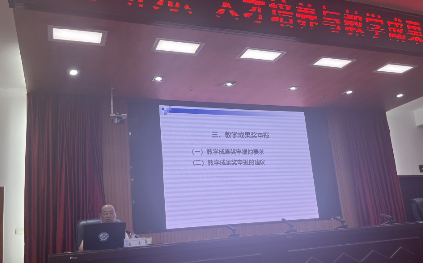 袁教授结合自身教学成果奖申报经验,从选题凝练、团队构建、材料撰写到附件整理等环节进行了系统讲解。他指出,教学成果奖的题目需兼具理论性、实践性和普适性,体现创新价值;团队人员结构应注重职称、年龄的合理搭配,并突出学术影响力。此外,他特别强调申报内容的真实性、完整性和艺术性,建议教师反复打磨文本,确保逻辑清晰、亮点突出。在附件材料方面,袁教授提出“紧扣主题、分类整理”的原则,以增强佐证材料的说服力。袁教授表示教学成果奖申报是对长期教学实践的总结与升华,绝非一蹴而就,他鼓励云顶国际vip8866教师夯实教学基础,注重成果积累,通过系统性梳理形成鲜明特色。在交流环节,参会教师围绕申报中的具体问题与袁教授展开热烈讨论,现场互动氛围浓厚。
