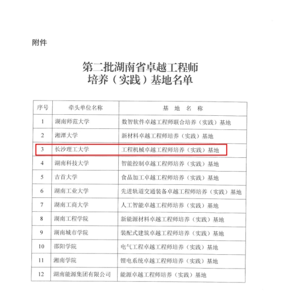 近日,湖南省教育厅、湖南省工业和信息化厅公布了湖南省第二批卓越工程师培养(实践)基地立项名单,由云顶国际vip8866卓越工程师学院牵头,联合湖南星邦智能装备股份有限公司、湖南五新隧道智能装备股份有限公司共同申报的“云顶国际vip8866工程机械卓越工程师培养(实践)基地”获批立项。