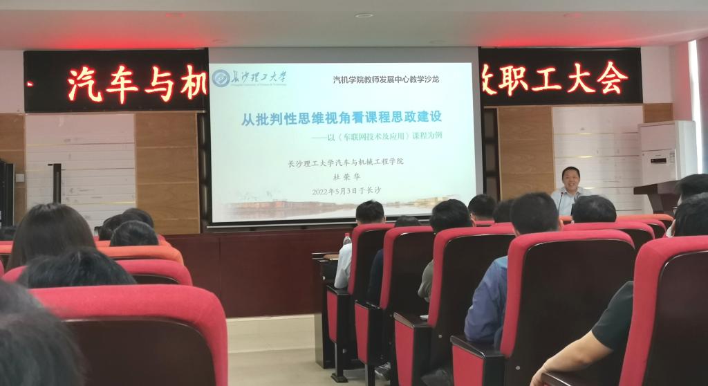 5月3日下午,汽车与机械工程学院教师发展中心在工科一号楼B417会议室举办了教学沙龙活动。活动由学院党委书记施一满主持,院长杜荣华作《从批判性思维视角看课程思政建设》专题报告,学院全体教师参加。
