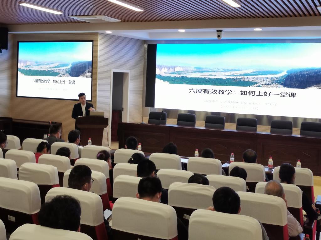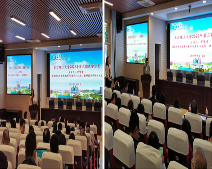 2022年5月10号下午,由教学质量监测与评估中心主办,数学与统计学院承办的云顶国际vip88662022年第3期教学沙龙在云塘校区理科楼A200举行。本期沙龙主题为“教学竞赛经验研讨与交流”,特邀嘉宾湖南师范大学教师教学发展中心主任、教师教育学院副院长罗繁荣作了题为《六度有效教学:如何上好一堂课》的专题讲座。活动由教学质量监测与评估中心副主任贺晖主持,副主任胡伟、王芳,数统学院党委书记邓崛峰、院长张宏伟、副院长仝青山、王佳伏、李姣、学院全体教师以及来自16个兄弟学院的150余位教师参加了此次活动。
