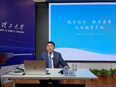 佟家栋教授首先通过提问的方式将老师和同学引入到课程主题,即什么是数字?什么是数字要素或数据要素?数字经济与传统工业经济的关系是什么?什么是数字经济生产方式?数字经济对GDP增长的贡献如何?