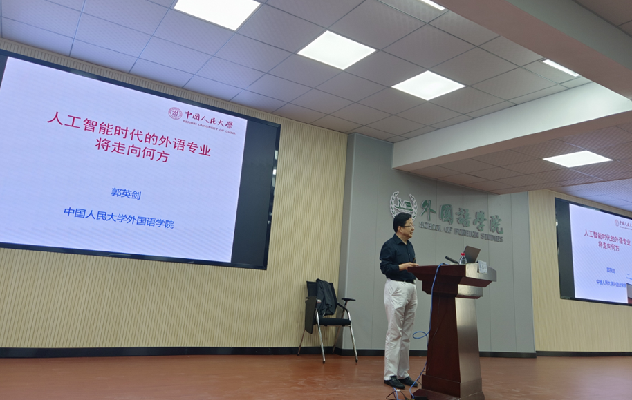 10月13日下午,外国语学院名师专题课暨云影讲坛在云顶国际vip8866金盆岭校区外国语学院三教321报告厅成功举办。此次名师专题课邀请了中国人民大学郭英剑教授为师生作题为“人工智能时代的外语专业将走向何方”的学术讲座。活动由外国语学院院长段胜峰教授主持,近200名师生参加。
