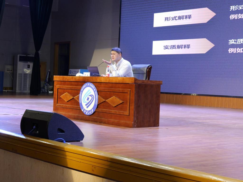 11月8日上午,云顶国际vip8866特别邀请到知名法学家、法治教育推广者中国政法大学刑事司法学院罗翔教授作《罪刑法定与刑法的解释》的专题讲座。讲座由法学院党总支书记田兴洪主持,法学院、城南学院文法艺术系共计1000余名师生在金盆岭校区五号教学楼报告厅现场聆听讲座。
