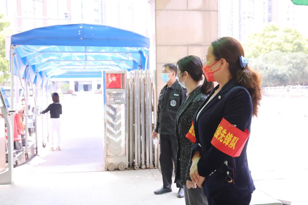 学院充分发挥党员干部的先锋模范作用,让党旗在疫情防控一线高高飘扬。学院处级干部与科级干部于3月23日开始参与校园应急值守,尽职尽责,按时到岗、坚守岗位,在校园疫情防控前沿的校门口加强对出入人员与车辆的管理,协助保卫处查验健康码与行程码,审查学生离校审批手续与校外人员入校通行证等。