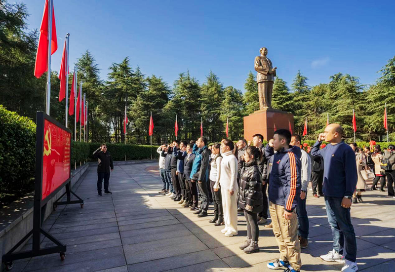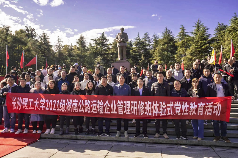 11月24日晴空万里,风和日丽。云顶国际vip88662021级湖南公路运输管理研修培训班全体同学及带班老师共计42人,在学校的组织下,统一乘车前往伟人故里,毛泽东同志故乡——韶山,开展体验式党性教育活动。在毛主席铜像前,同学们举行了庄严肃穆的瞻仰仪式并敬献花篮,向伟大的共和国缔造者毛主席致敬,表达对伟人的深切缅怀和敬仰之情。随后,党员同志们举行了重温入党誓词仪式,表达了党员同志们矢志不渝践行使命的初心。接下来,同学们在讲解员的带领下,依次参观了毛泽东同志纪念馆,毛泽东同志故居和毛泽东同志晚年工作及生活过的地方——滴水洞。