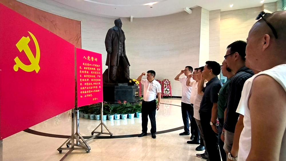 任弼时铜像下,全体人员静静肃立,瞻仰铜像。由学院党总支副书记谢士成领誓,在场全体同志举起右手,重温入党誓词:“我志愿加入中国共产党,拥护党的纲领……”,铿锵有力的誓言在纪念馆内回响,表达全体党员同志向先烈学习、弘扬革命精神的决心。