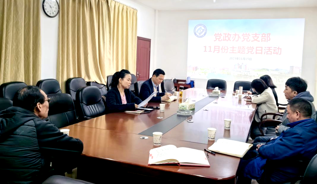 2023年11月15日,继续教育学院党政办党支部全体党员在15教三楼会议室开展11月份主题党日活动。支部全体党员和积极分子参加,支部书记易国萍主持。