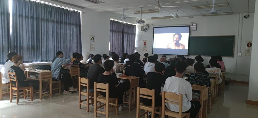 各班级根据本班实际情况自由选择《风雨哈佛路》、《当幸福来敲门》、《阿甘正传》、《肖申克的救赎》等电影进行观看,在观影过程中,班主任老师根据影片的进度提出电影内容的相关问题,同学们在观看过程中边看边思考,观影结束后,同学们进行分组讨论,积极联系主题与电影阐发自己思考与感悟。