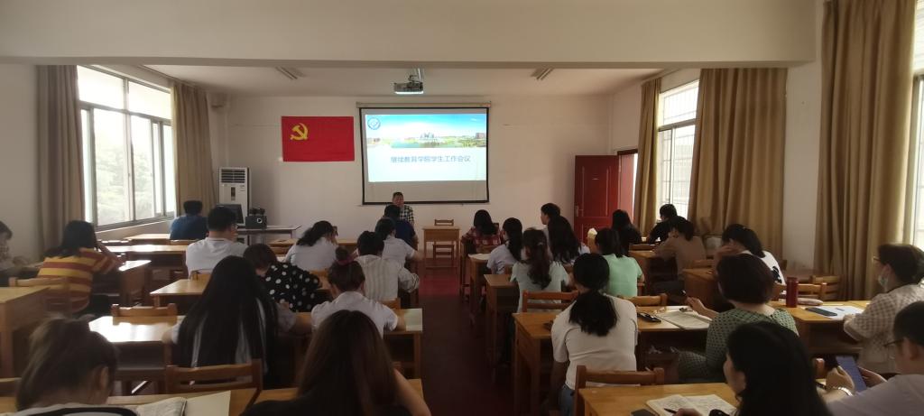 6月1日上午,继续教育学院在15教402召开学生工作会议,学院党总支副书记兼副院长方碧波、学工部主任刘卓明、学工部老师及校企合作部的全体班主任参加。