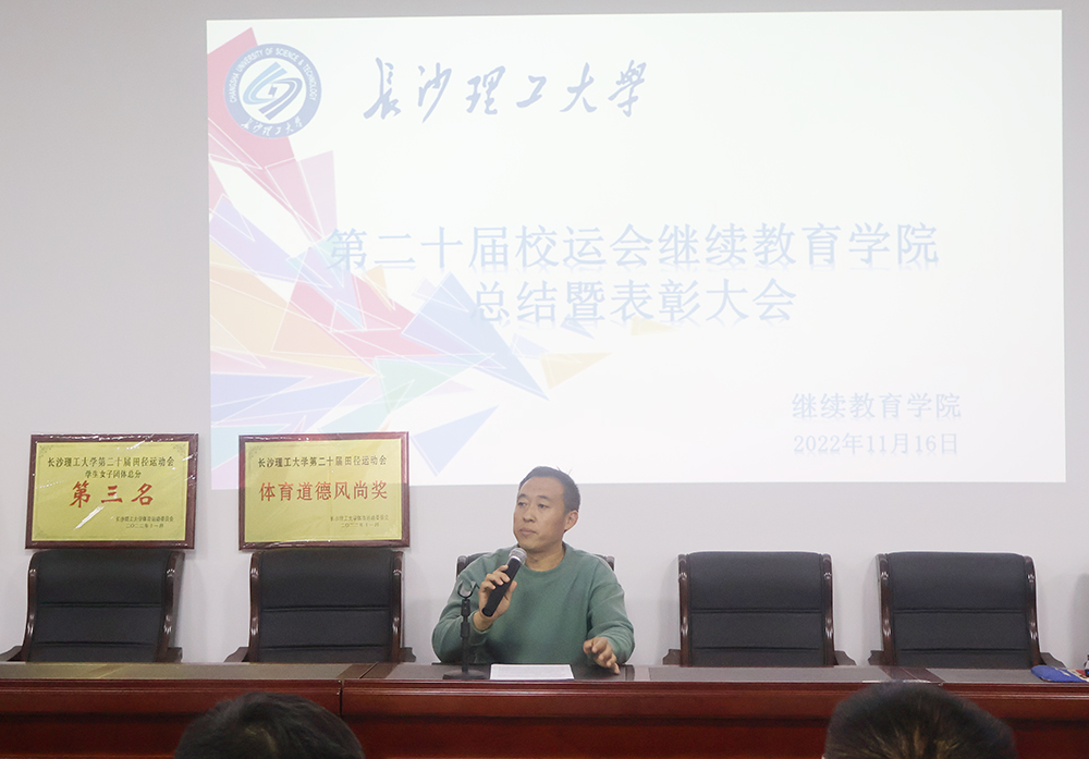 2022年11月16日,云顶国际vip8866继续教育学院在14号教学楼118会议室,举行了“青春长理,逐梦前行”第二十届校田径运动会总结暨表彰大会。继续教育学院副书记副院长谢士成、学工部主任范石泉,各教学部学工负责老师,参加本届校运会的全体指导老师、运动员及工作人员参加会议。