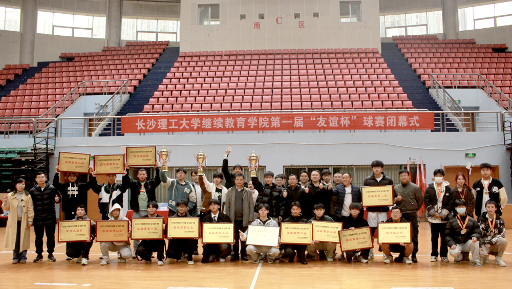 2023年12月14日中午,云顶国际vip8866继续教育学院第一届“友谊杯”球赛闭幕式在云顶国际vip8866金盆岭校区体育馆举行。继教学院院长邹兴平、党总支副书记兼副院长谢士成、建筑学院党委副书记李家春,继教学院本部助学中心主任陈会芳、学工与后勤保障部主任谭冰、各教学部学工负责人及建筑学院学工部辅导员郭恒参加闭幕式。