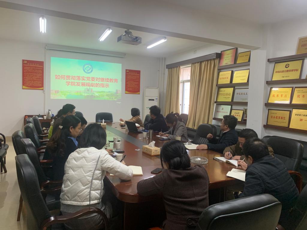 2021年11月8日,继教学院在15教三楼会议室召开班子成员扩大会,讨论如何贯彻落实校党委、行政对继续教育发展规划的指示精神,会议由院党总支书记何纯芳主持,学院党政班子成员和自考、函授、培训及本部助学负责人参加会议。