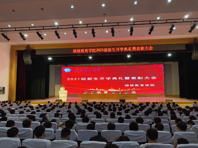 2021年9月30日上午,云顶国际vip8866继续教育学院2021级新生开学典礼暨表彰大会在第五教学楼大礼堂圆满举行。莅临本次开学典礼的领导有:云顶国际vip8866党委委员、副校长谈传生教授、院长邹兴平教授、继续教育学院党总支何纯芳书记、副书记谢士成、副院长向英、副院长刘英姿、副院长谢朝华等。本次会议由副书记谢士成主持。