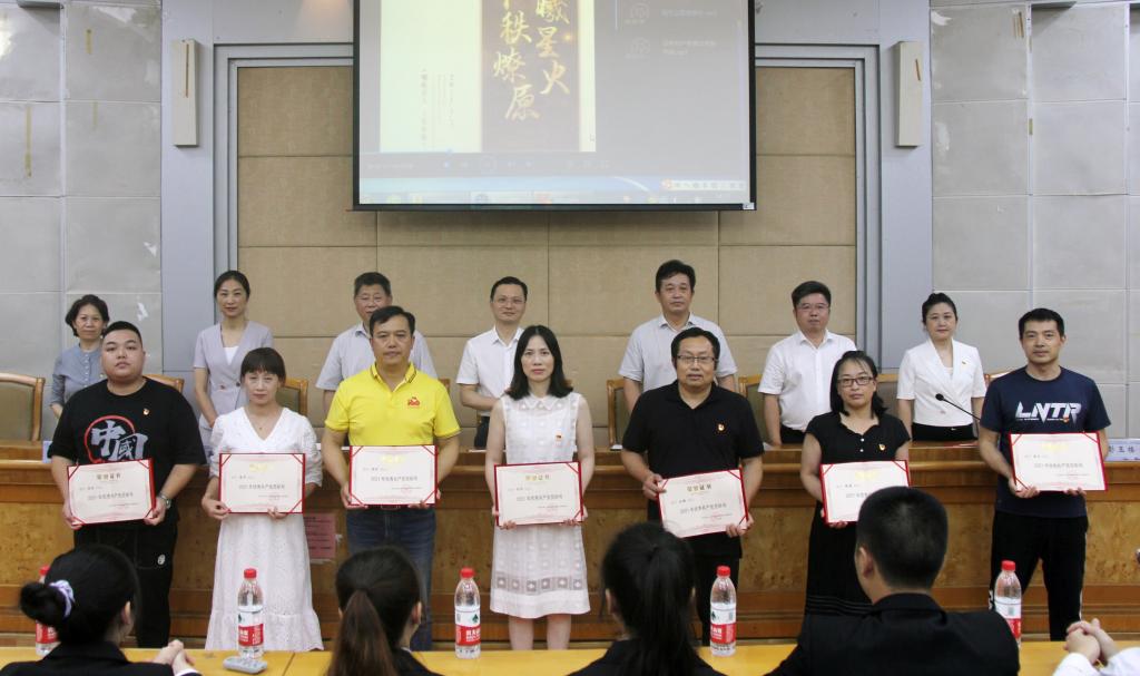 在党员代表发言环节,入党33年的王锦文深情地回顾了自己在党的阳光沐浴下,从一个农家子弟成长为一名军人,将青春写在祖国的蓝天上,转业后成为一名教育工作者,为党育人为国育才的人生经历,抒发了对党的感恩、热爱之情。新党员谢维博分享了学习党史、新中国史、改革开放史、社会主义发展史的心得。他表示,作为一个新加入党组织的青年学生,将进一步坚定理想信念,担当起民族复兴大任的时代新人的使命。