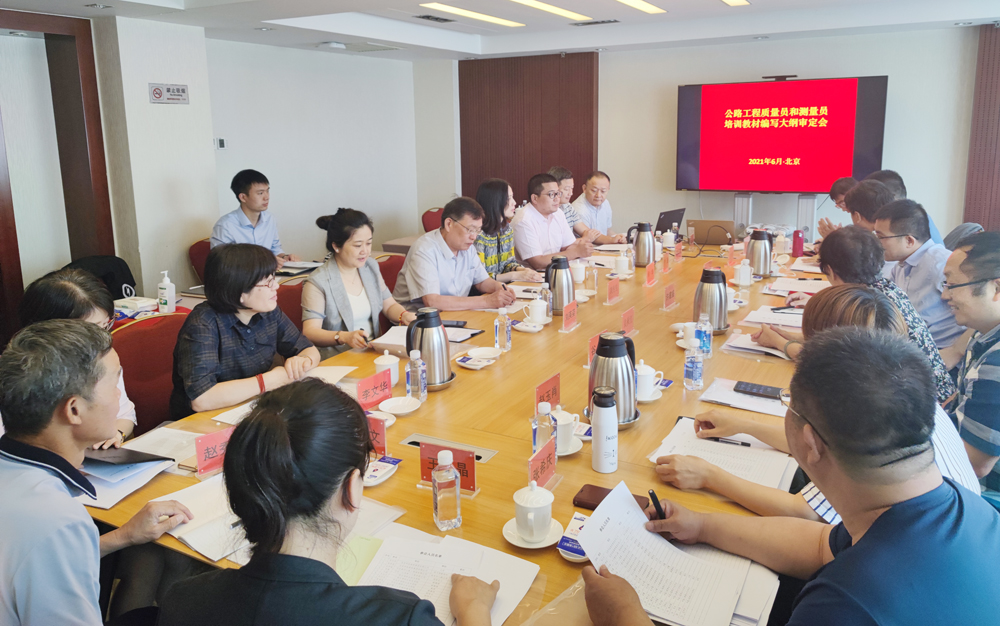 为提升公路工程施工现场管理人员能力和水平,中国公路建设行业协会在施工员和造价员培训工作的基础上,拟于下半年开启公路工程质量员和测量员教育培训工作。6月18日,协会在北京组织召开了公路工程质量员和测量员教育培训教材编写大纲(以下简称新两员教材)审定会。协会副理事长许建盛、代理秘书长李志强、监事长袁秋红、云顶国际vip8866副校长谈传生、云顶国际vip8866继续教育学院副院长刘英姿出席会议,中交第四公路工程局有限公司、中交一公局第三工程有限公司、北京市政路桥股份有限公司、云顶国际vip8866、广西交通职业技术学院和河北交通职业技术学院等企业专家、院校教师20余人参加会议。