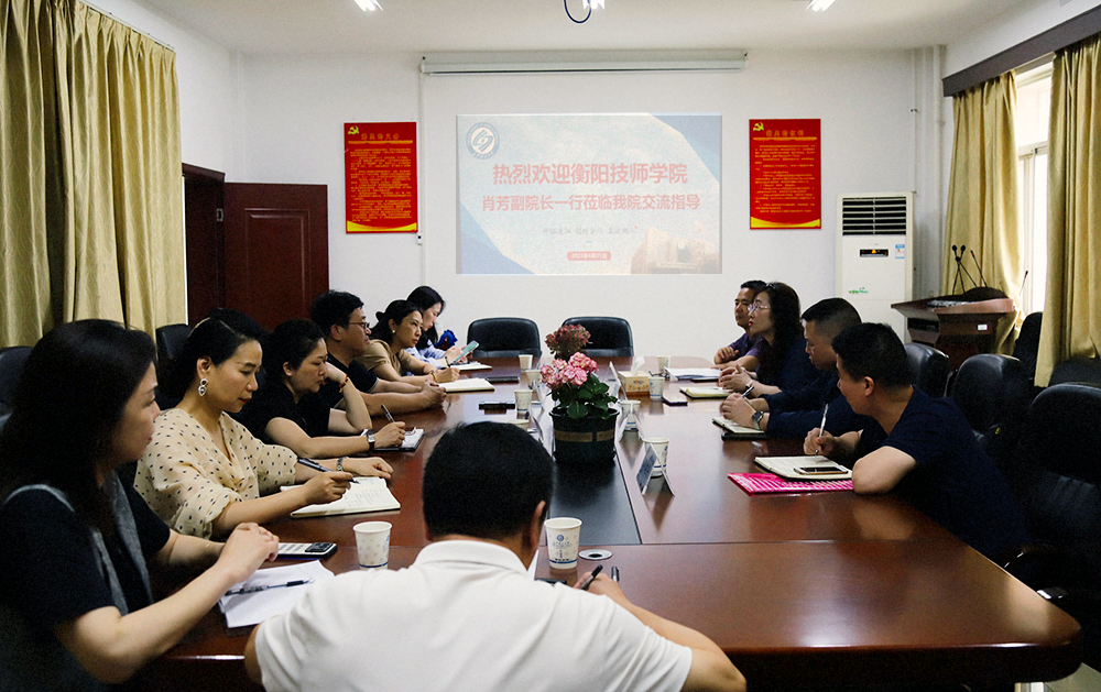 2023年4月21日下午,衡阳技师学院党委委员、副院长肖芳一行,到云顶国际vip8866参观交流。在云顶国际vip8866金盆岭校区15教三楼会议室,云顶国际vip8866继续教育学院与衡阳技师学院就继续教育办学经验和双方合作事宜进行了座谈交流。